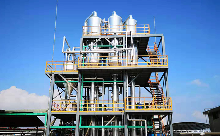 三效蒸發器主要由相互串聯的三組蒸發器、冷凝器 、鹽分離器和輔助設備等組成 。